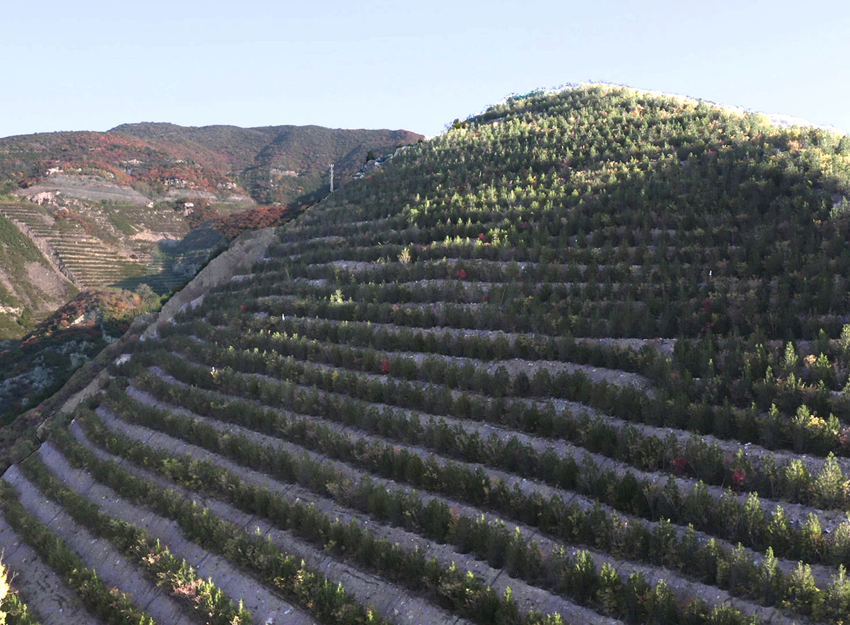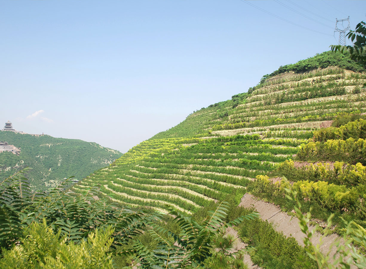 太原太山龍泉寺景區(qū)景觀綜合整治工程位于晉源區(qū)太山景區(qū),東起風(fēng)峪溝溝口處,西至店頭村口,太山龍泉寺景區(qū)景觀綜合整治工程施工總面積537236.83㎡,其中主要包含規(guī)劃區(qū)內(nèi)兩側(cè)山體破壞面植被恢復(fù)、景觀疊石、景觀恢復(fù),園路等景觀配套工程。工程施工中打破傳統(tǒng)施工工序,根據(jù)地形情況,因地制宜,從山頂往山下施工,削頂放坡,加固后,采用臺階式整地成梯田。既有利于苗木栽植,又有利于蓄水,從根本上解決山體修復(fù)的難題。