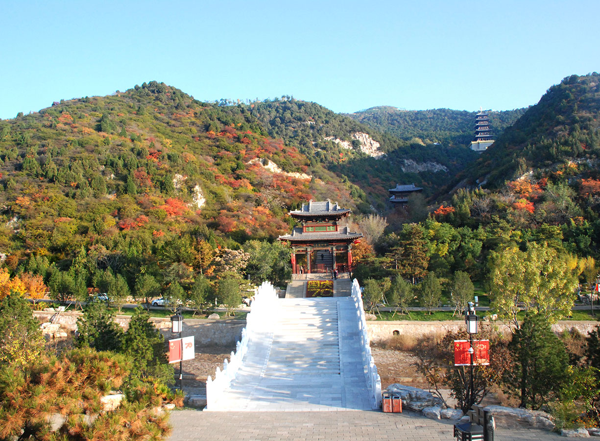 根據(jù)龍泉寺周邊原有植物生態(tài)布局特點,以園林的思路進行山體修復(fù),大量選擇金枝槐、五角楓、黃櫨等彩葉樹種,向原生態(tài)靠攏,形成自然式植物群落。積極響應(yīng)山西省委省政府“增彩增色”美麗山西建設(shè)的重要舉措,把綠化和彩化、財化“三化”有機結(jié)合,栽植常綠喬木196717株;落葉喬木11465株;亞喬木3544株;叢生灌木及球類272223株;地被12029.02㎡;綠籬32976.27㎡;花卉67785.76㎡;草坪253009.7㎡;爬山虎、檸條1696945株。西坪園路鋪設(shè)2377.19㎡、中坪、東坪爬山臺階及園路2937.3㎡、景觀疊石640.74.噸、4.6米寬仿古驛道石材鋪設(shè)11643.14㎡、廣場石材鋪設(shè)5758.3㎡、景觀擋墻1560.74米等,打造出“春有花、夏有綠、秋有色、冬有景”的景觀效果。